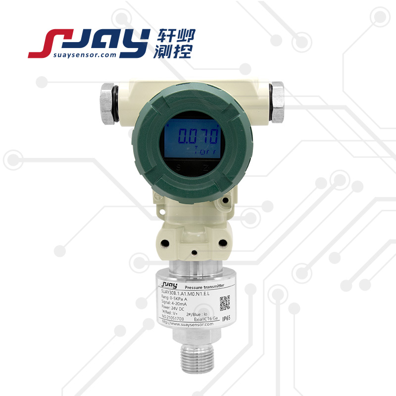 絕壓變送器SUAY30采用德國進口的陶瓷電容壓力敏感元件,在不大幅度損失輸出信號的情況下可將最小量程遷移至0-1Kpa、2K怕、5Kpa、10KPa,輔以特殊、穩定、高輸入阻抗的信號處理模塊,使其具有優良的綜合測量精度,滿足真空測量的需要。